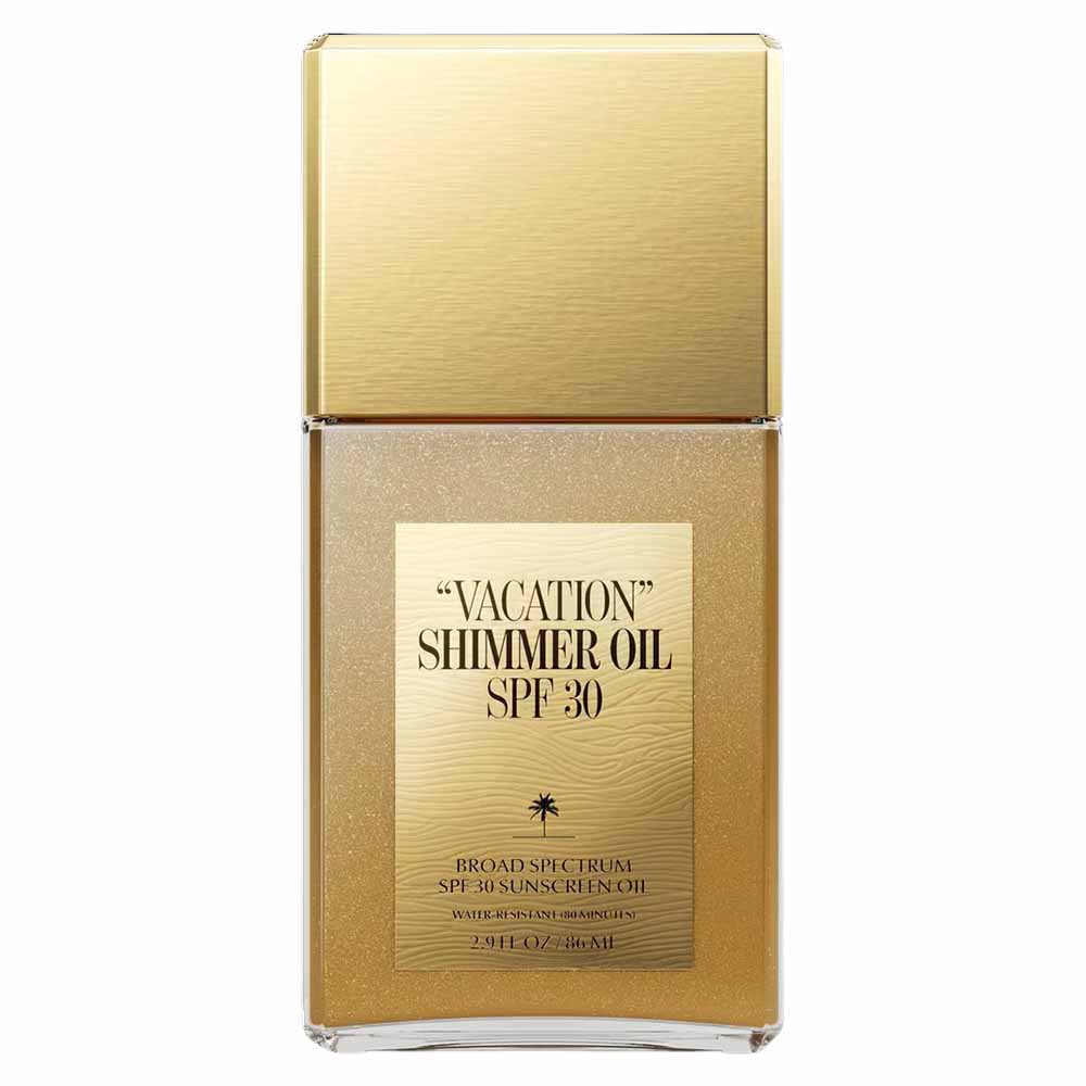 <strong>eCosmetics is an authorized retailer... More of Vacation.</strong>u201cVACATIONu201d Shimmer Oil SPF 30 is u201cBlack Tieu201d Sunscreen. Boasting two types of u201cShow Stoppingu201d shimmeru2014a pearlescent glaze alongside larger gold mica flecksu2014this premium-grade body oil includes Vacationu2019s award-winning scent, SPF 30 protection, and a lavish blend of naturally derived oils that will turn any poolside moment into a dazzling red-carpet event. Less