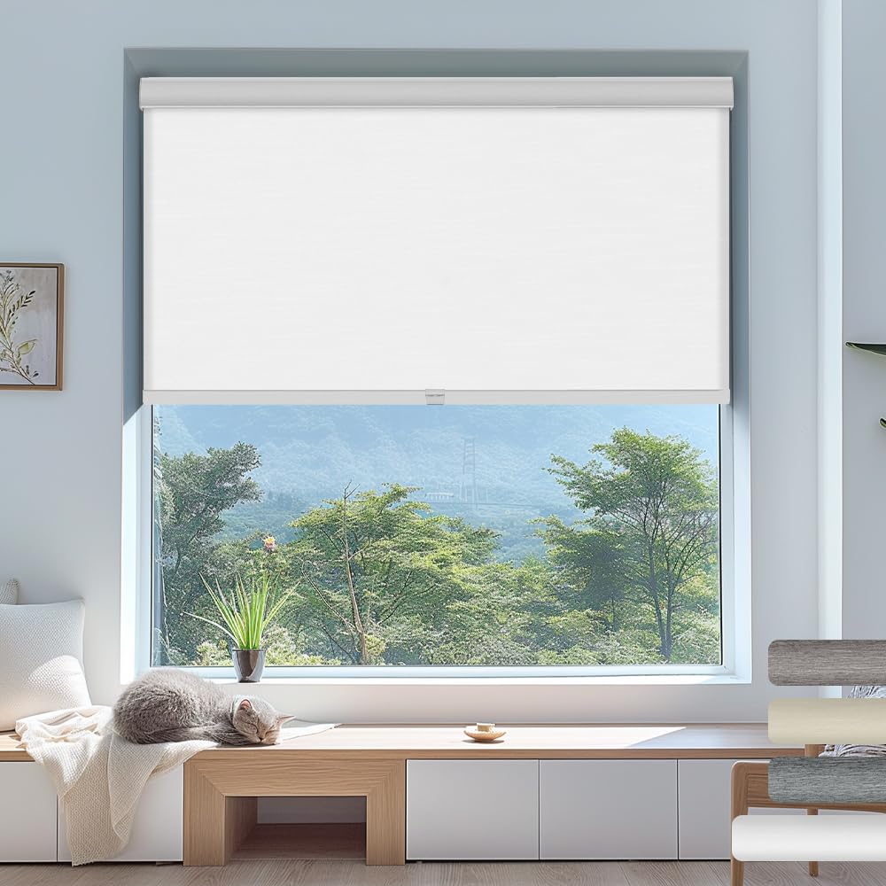 Light Filtering Roller Shades,Cordless Striped Jac... Morequard Roller Blinds,Room Darkening with Cassette Valance Protecting Privacy Window Shades for Home Office,White,92" W x 36" H White 92"W x 36"H Less