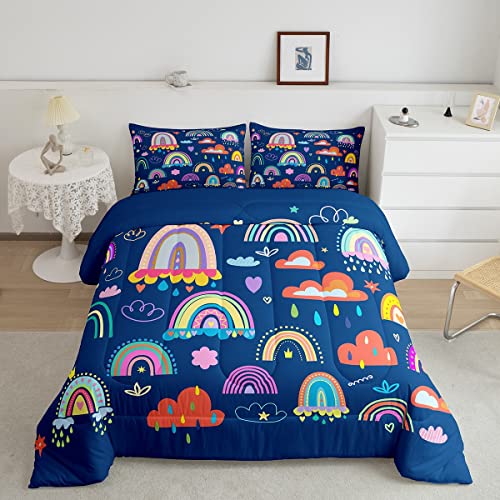 Feelyou Cartoon Rainbow Comforter Set for Girls Bo... Moreys Lovely Rainbow with Clouds Comforter Colorful Stripes Bedding Set Multicolor Duvet Set Twin Size Quilt Set 2Pcs Less
