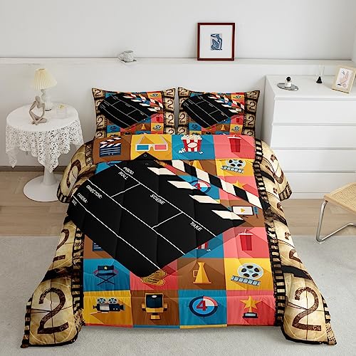Erosebridal Home Theater Decor Comforter Set Full ... Mai multfor Boys Girls Family Movie Themed Bedding Movie Theater Decor Bedding Comforter Sets Vintage Cinema Style Duvet Insert Film Theme Decor Quilt 3 Pcs Mai puţin