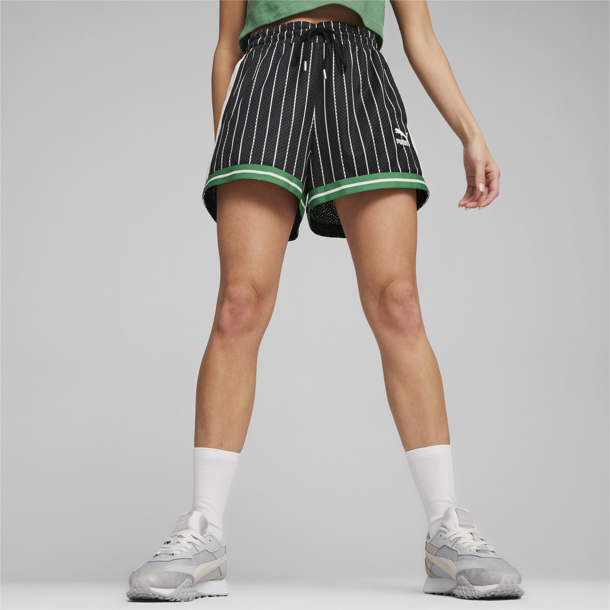 PRODUCT STORYStraight out of the '70s PUMA Archive... Mores, the T7 gets a fresh update, and this time we've reworked the OG track pants with a much more relaxed vibe as a pair of mesh shorts It features your standard fit, mesh material, and an A-line cut Of course, the signature stripes are still on the sides FEATURES BENEFITSMade with 100% recycled material excluding trims decorationsDETAILSRegular fit140 gsm, mesh materialElastic waistband with drawcordsSide seam pocketsAbove knee lengthA-line fitContrast tipping tape at hem Less