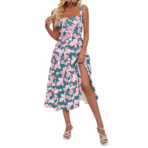 FQFGGYD Women's Cami Midi Floral Dress Flowy Sundr... Moreess Summer Beach Dresses Halter Side Slit Printed Vacation Long Skirts Blue Less