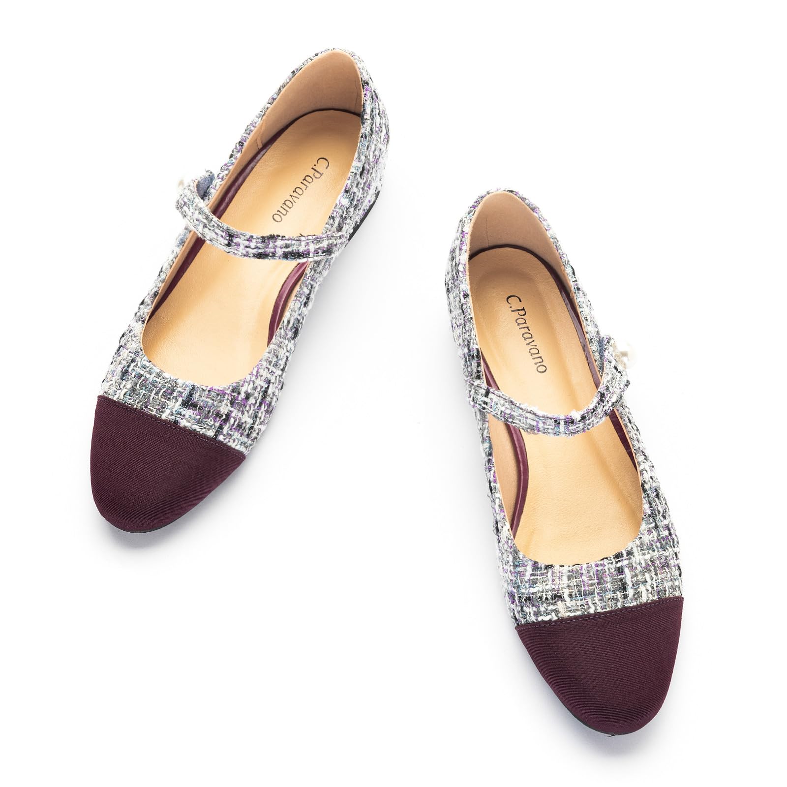 C.Paravano Women's Flats Shoes Round Toe Ballet Fl... Mai multats with Strap Comfortable Mary Janes Tweed Flats Dressy Casual Work Office Party Shoes for Women 9 Purple Mai puţin