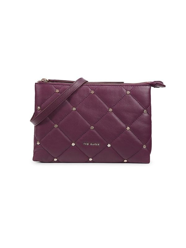 Ted Baker's bag has an exceptional design. Made of... Mai mult quilted leather and adorned in embellishments. This version has dual compartments for storing essentials with ease. Top zip closure Goldtone hardware Inside zip pocket Inside slip pocket Leather Lining: Cotton Imported SIZE Leather strap, 21 to 23 drop 9W x 6H x 1.5D. Center Core - Handbags/slgs > Saks Off 5th > Barneys Warehouse. Ted Baker. Color: Purple. Mai puţin