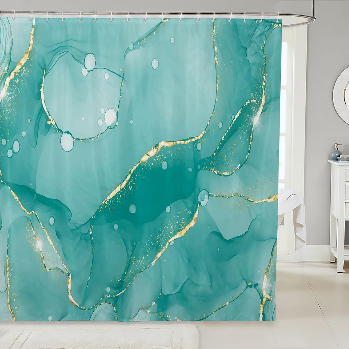 Blue Shower Curtain 72x78 inch,Marble Bathroom Sho... Morewer Curtain Sets for Kids Boys Girls,Watercolor Golden Marble Texture Fabric Shower Curtain,Mid Century Abstract Art Waterproof Bathroom Curtains Color 11 78.00" x 72.00" Less