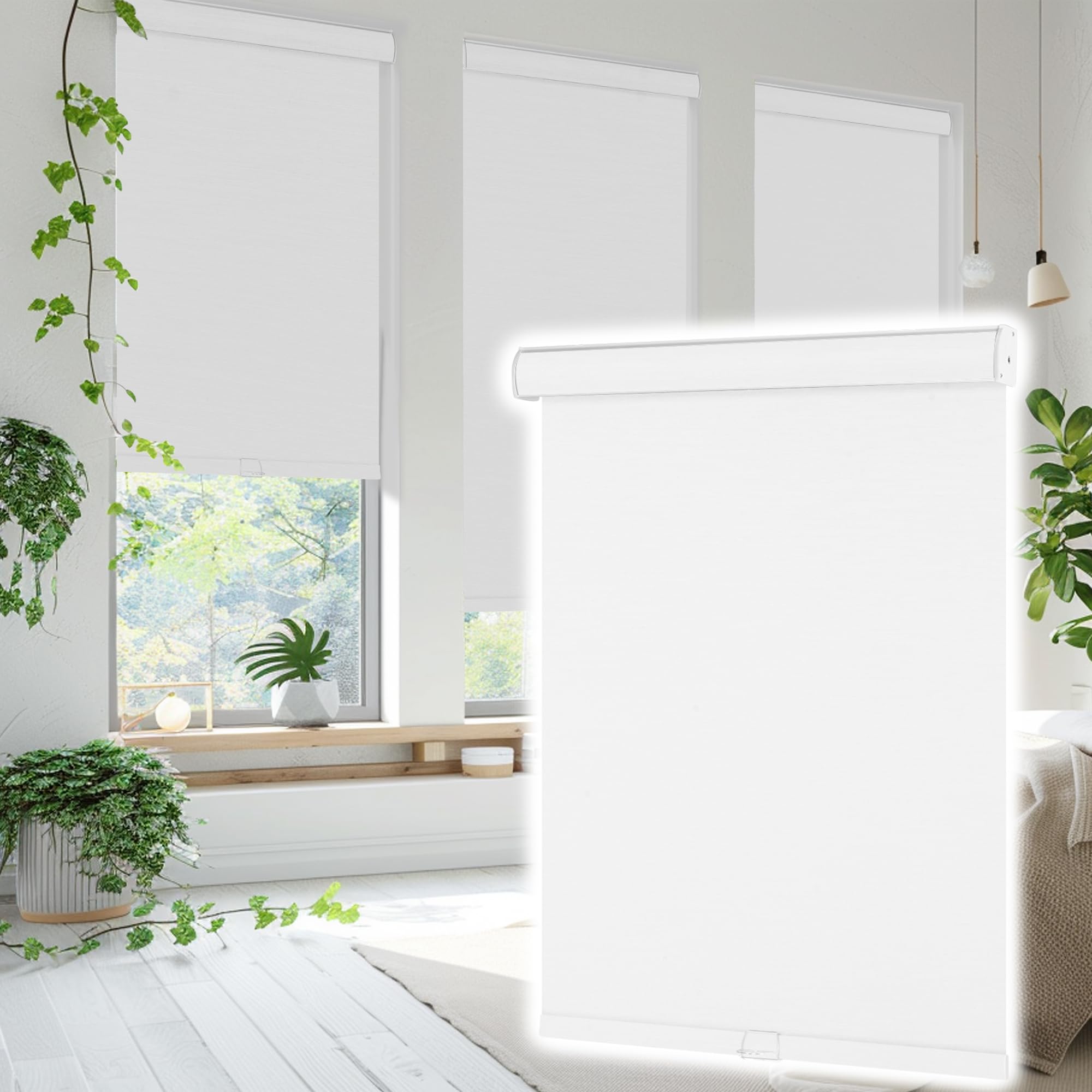 Blackout Roller Shades for Windows,Free-Stop Cordl... Moreess Roller Blinds with Cassette Valance,Striped Jacquard Window Shades for Bedroom,Thermal Insulated Fabric,White,42" W x 96" H Blackout White 42"W x 96"H Less