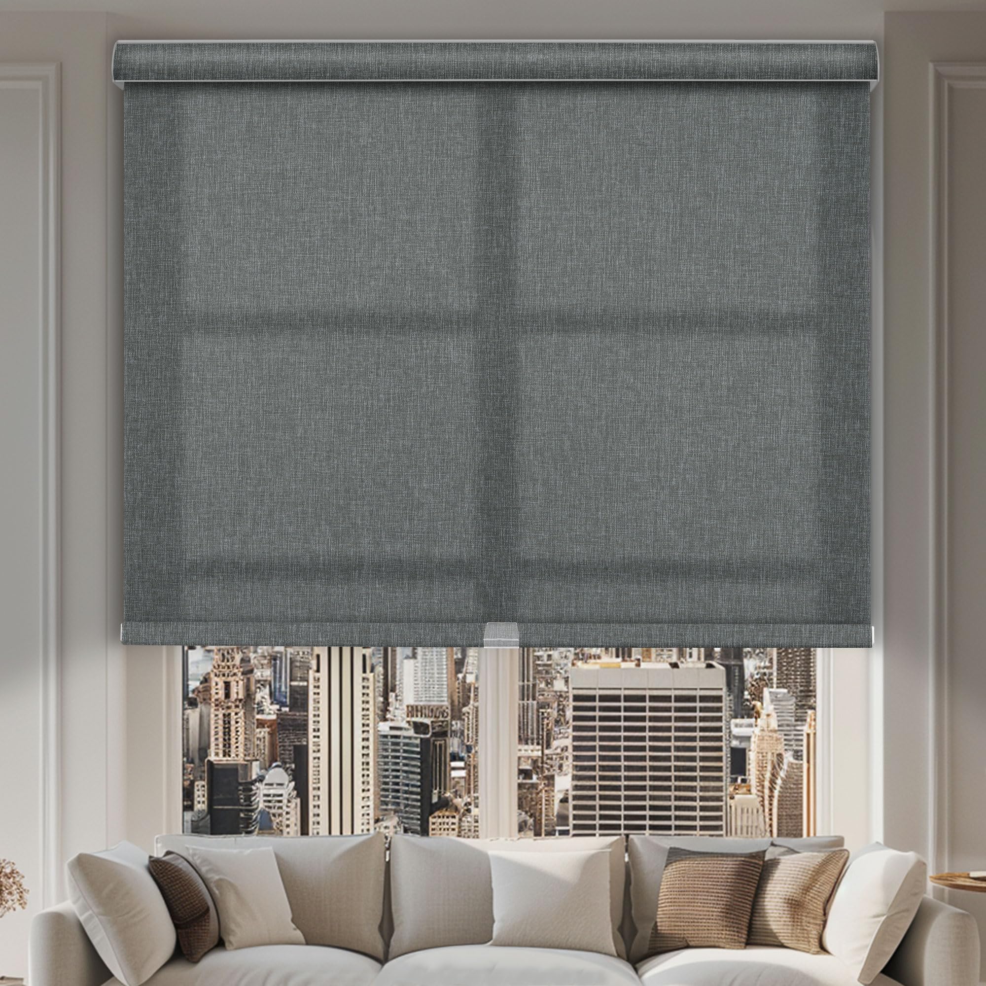 Light Filtering Roller Shades,Cordless window shad... Morees,Linen Window Blinds with Cassette Valance Thermal Insulated Roller Blinds for Home French Door.Gray,25" W x 96" H Light Filtering-gray 25"W x 96"H Less