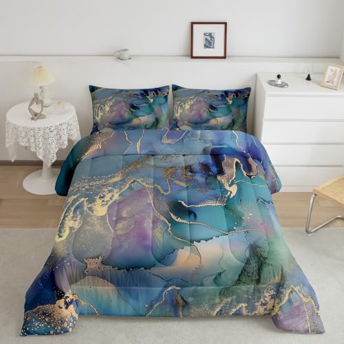 Erosebridal Golden Marble Grain Bedding Set Full,A... Morebstract Marble Texture Design Duvet Insert Marbling Comforter Set Iridescent Ink Fluid Art Quilted Duvet Pastel Purple Teal Green Marble Home Decor Less