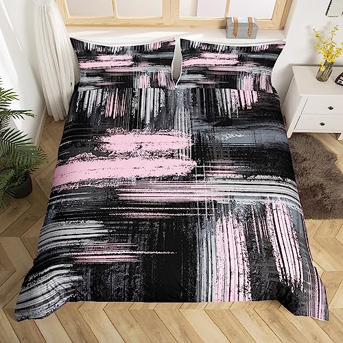 Feelyou Abstract Pink and Black Comforter Cover Fu... Morell, Geometric Artistic Smear Bedding Set Abstract Graffiti Art Bedding Set Contemporary Modern Brush Design Bedspread Cover Breathable Bedclothes Less