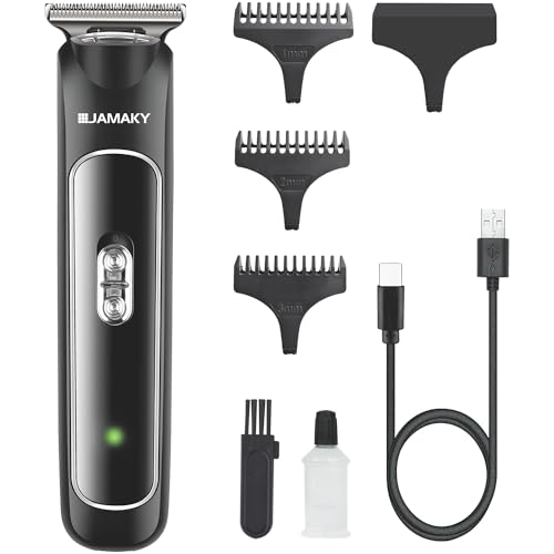 JAMAKY Cordless Beard Trimmer for Men: 3CR13 Blade... Mores, T-Edgers, 6300RPM, 120 Min Run, 3 Combs, Spotlight, Type-C Charge - Ultimate Grooming Kit Less