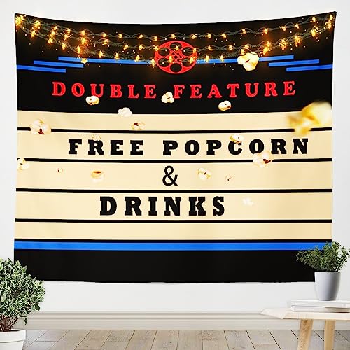 Movie Themed Wall Tapestry Vintage Cinema Style Tapestry Home Theater Decor Tapestries for Family Boys Girls Film Theme Decor Wall Hangings Popcorn Bl