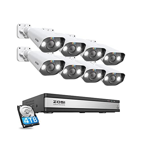 ZOSI 5MP Überwachungskamera Aussen Set, 16CH 4TB ... MoreHDD NVR und 8X 5MP PoE IP Outdoor Kamera für 24/7 Aufzeichnung, 2 Wege Audio, AI Erkennung, Spotlight und Ton Alarm Less