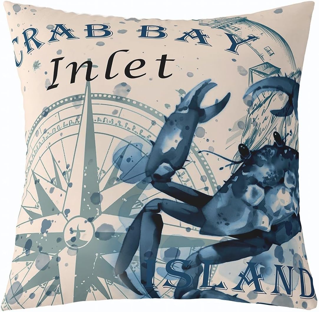 Kids Crab Throw Pillow Cover 18"x18" Sof... Mai multt Ocean Creature Themed Pillow Case Cushion Cover Sea Underwater World Decorative Throw Pillowcase Marine Life Sealife Blue Cushion Case Bedroom Multi 02 18" x 18" Mai puţin