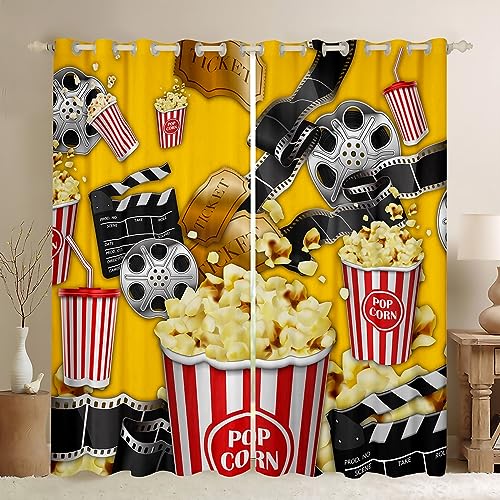 Movie Themed Curtains for Boys Girls Family Film T... Moreheme Decor Blackout Curtains Popcorn Filmstrip Print Window Curtains Home Theater Decor Vintage Cinema Ticket Bedroom Curtains,2 Panels 52"Wx63"L Less