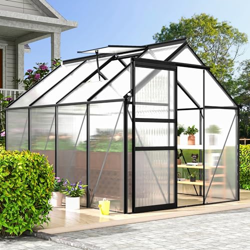 DWVO 6x8FT Polycarbonate Greenhouse Heavy Duty Gre... Moreen Houses Outdoor Aluminum Greenhouses with Sliding Doors Vent Window Premium Walk-in Greenhouse Large Sun House for Garden Backyard, Matte Black Less