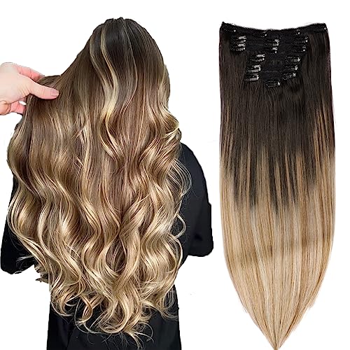 DIYOMO Hair Extensions Real Human Hair,Human Hair ... MoreClip In Extensions,Soft&Natural Human Hair Extensions Clip Ins 120g 7pcs Real Hair Extensions Clip In Human Hair Straight (18 Inch, T1B/8P/60) Less