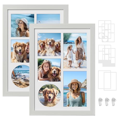 SONGMICS A4 Picture Frame Collage for Wall Decor, ... Mai multSet of 2, 4x6 Multi Photo Frame for Desk, 8x10, 8x12 or 4x4 Photos with 6 Mats, 9x12 Without Mat, Glass Front, 3 Non-Trace Nails, Rustic White Mai puţin