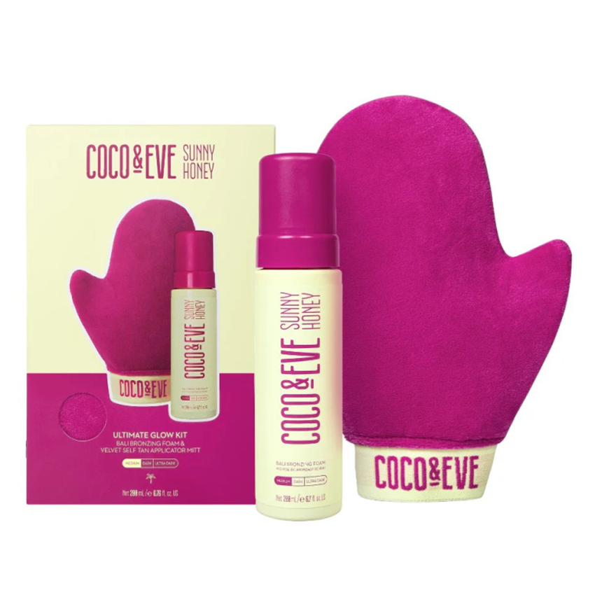 <strong>eCosmetics is an authorized retailer... More of Coco & Eve.</strong>The perfect kit for that flawless tan!<span style=text-decoration: underline;><em><strong>Ultimate Glow Kit Includes:</strong></em></span><em><strong>1 x 200ml Bali Bronzing Foam:</strong></em> Anti-ageing self tan with zero nasties. Created using unique Cellushape formula to hydrate and firm the skin.<br /><em><strong>1 x Hypoallergenic Soft Velvet Mitt:</strong></em> Helps with the application of the tan to ensure the formula is evenly spread and doesn't gather on dry areas of the skin.Learn more about <a href=https://www.ecosmetics.com/blog-beauty-spotlight-tropical-treatments-from-coco-eve/><span style=text-decoration: underline;>the Coco & Eve brand</span></a> and its products on our blog! Size:6.7oz Color:Medium Less