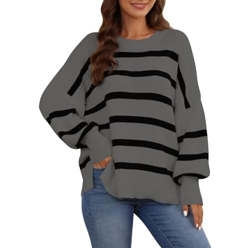 Pink Queen Women's Fall Oversized Striped Sweater ... MoreCrew Neck Batwing Long Sleeve Ribbed Knit Pullover Jumper Tops Medium Grey and Black Stripe Less