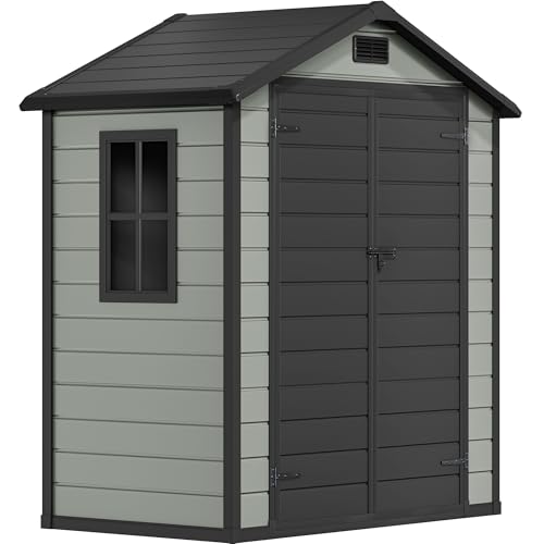 DWVO 6x4 FT Outdoor Resin Storage Shed with Floor,... More Waterproof Storage Shed with Lockable Door, Window and Vent, Plastic Tool Storage for Garden, Backyard, Patio, Lawn(Blue-Gray+Black) Less