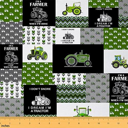 Feelyou Construction Fabric by The Yard, Equipment... Mai mult Trucks Upholstery Fabric, Cartoon Car Excavator Tractor Outdoor Fabric,Plaid Grid Green Black White Reupholstery Fabric for Chairs, 3 Yards, Mai puţin