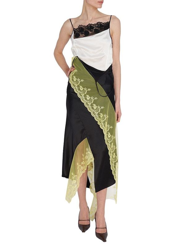 Meryll Rogge's slip dress is designed with pieced ... Mai multstyling and contact lace trim. Squareneck Spaghetti straps Concealed side zip Blouson waist Layered handkerchief hem Silk Dry clean Made in Italy SIZE & FIT About 57 from shoulder to hem Model measurements: 5'10 tall Model is wearing US size 4. Selloff Women's - S/o W Designer Sportswea > Saks Off 5th > Barneys Warehouse. Meryll Rogge. Color: Black. Size: 40 (6). Mai puţin