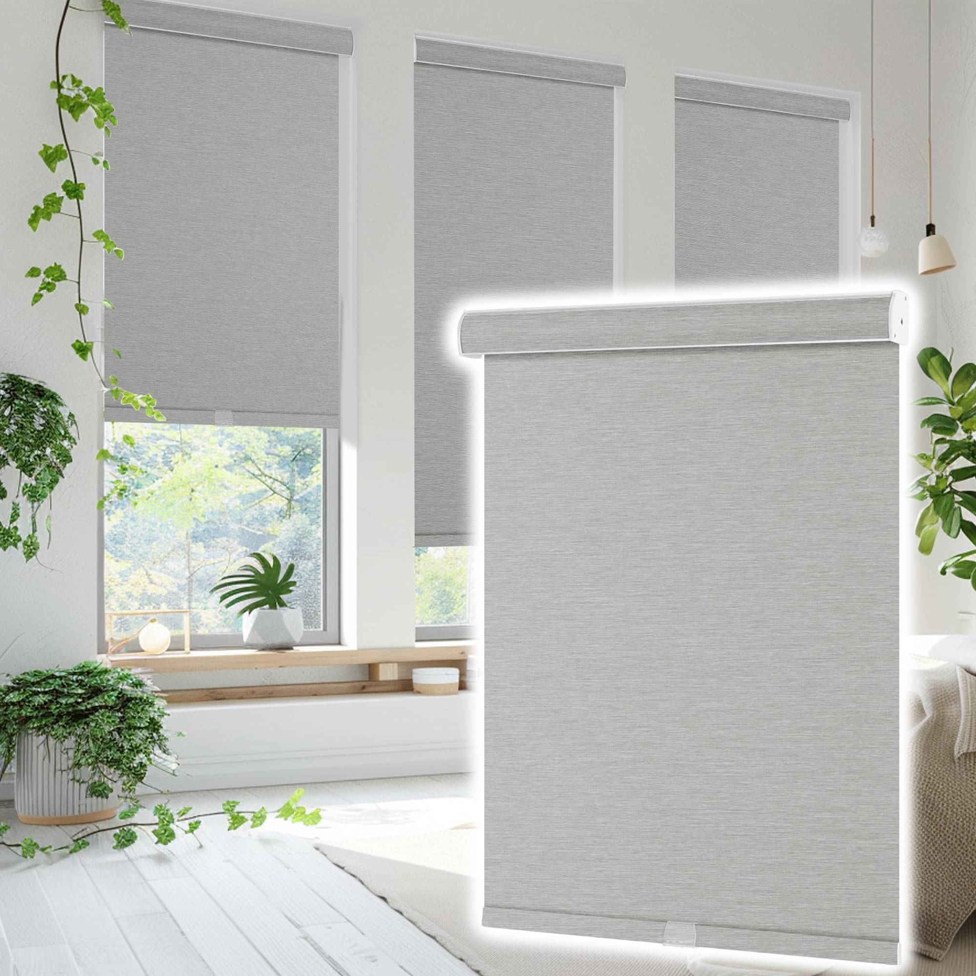 Blackout Roller Shades for Windows,Free-Stop Cordl... Mai multess Roller Blinds with Cassette Valance,Striped Jacquard Window Shades for Bedroom,Thermal Insulated Fabric,Gray,37.5" W x 60" H Blackout Gray 37.5"W x 60"H Mai puţin