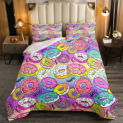 Kids Donuts Down Comforter, Funny Food Pattern Com... Moreforter Set for Boys Girls, American Traditional Breakfast Dessert Print Bedding Comforter, Cartoon Abstract Quilted Duvet and 1 Pillow Case, Twin Less