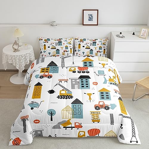 Feelyou Construction Vehicles Bedding Set Queen Si... Moreze Excavator Comforter Set for Kids Boys Girls Decor Equipment Trucks Comforter Set Microfiber Construction Site Cars Duvet Set Bedroom Quilt Set Less