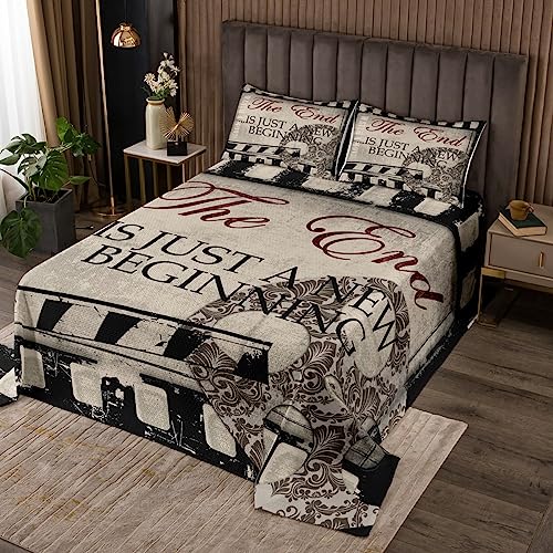 Erosebridal Movie Themed Bedspread Set 3 Pcs King ... Morefor Boys Girls Family Vintage Cinema Style Quilt Set Home Theater Decor Coverlet Set Movie Night Bed Set Movie Theater Decor Film Theme Bedding Less