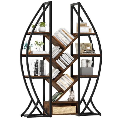 YITAHOME Oval Bookshelf, 5 Tier Etagere Bookcase I... Mai multndustrial Display Shelves for Living Room, Bedroom, Home Office, Rustic Brown Rustic Brown-oval 11.8"D x 51.2"W x 69.9"H Mai puţin