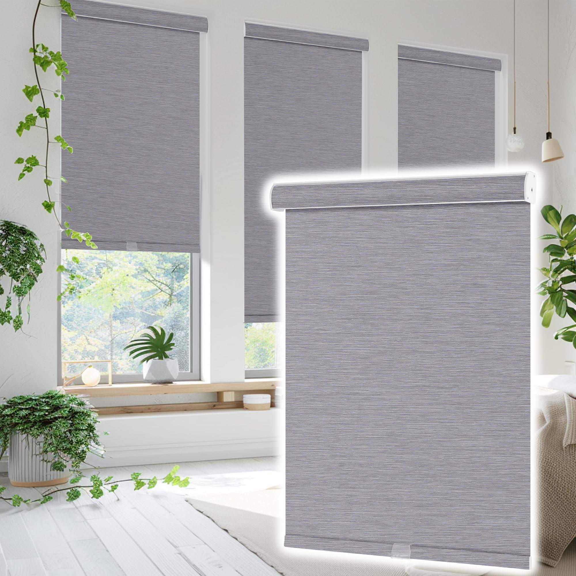 Blackout Roller Shades for Windows,Free-Stop Cordl... Moreess Roller Blinds with Cassette Valance,Striped Jacquard Window Shades for Bedroom,Thermal Insulated Fabric,Gray,28" W x 76" H Blackout Gray 28"W x 76"H Less