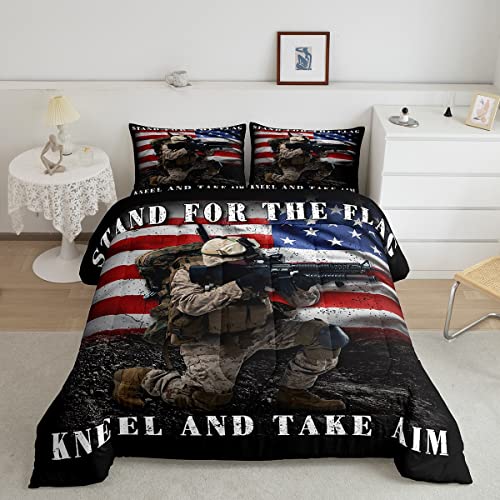 American Flag Comforter Set for Adult Teens Boys C... Moreamo Soldier Down Comforter Kids Men Vintage Usa National Flag Quilted Duvet Military Camouflage Beddings for Youth Grunge Stripes Bedding, Full Size Less