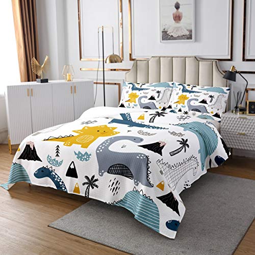 Kids Bedspread, Cute Cartoon Dinosaur Pattern Coverlet Set For Boys Children Lovely Animal World Bedroom Decor Quilted Coverlet, Geometry Stripe Grid