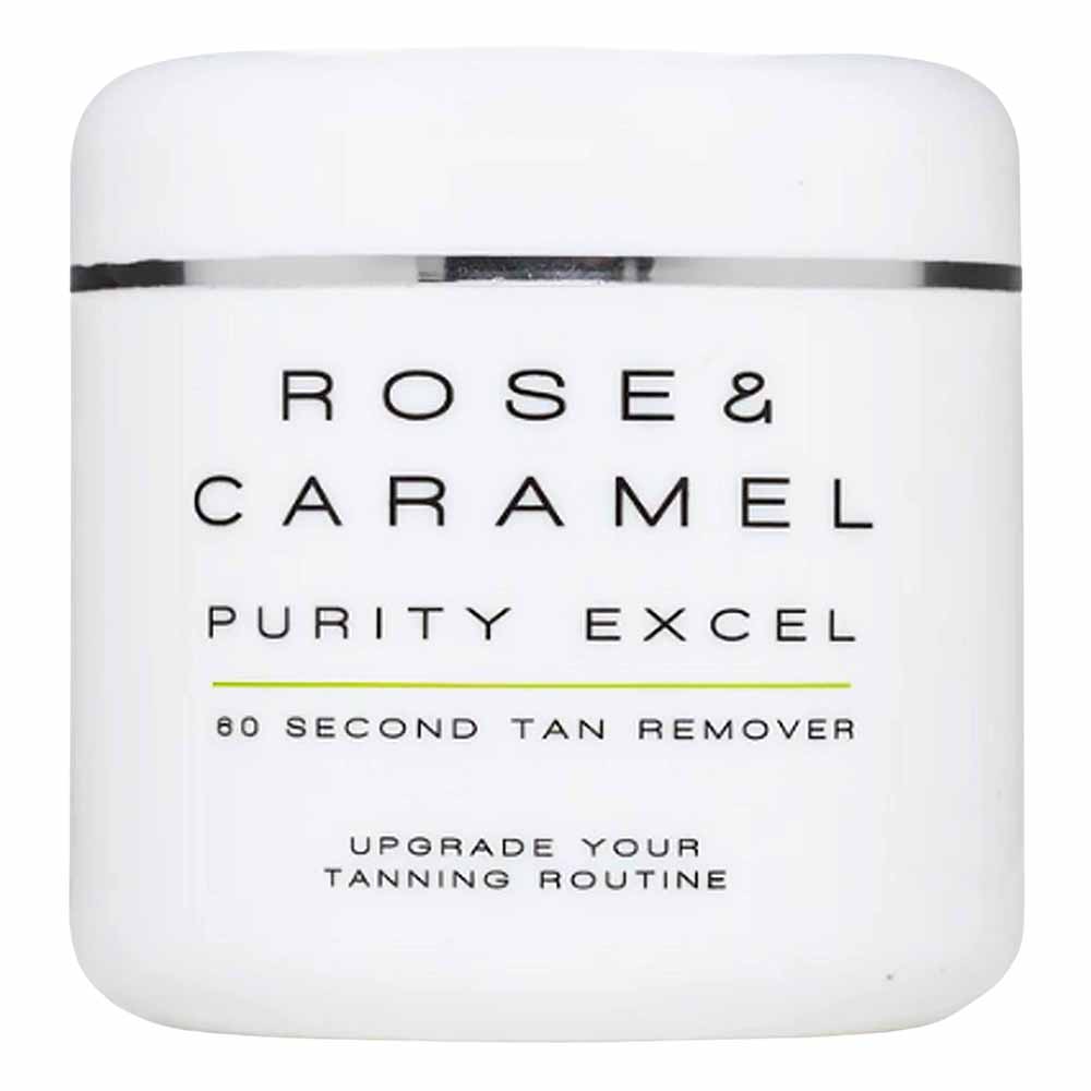 ... More of Rose & Caramel.</strong>When it comes to fake tan, applying it is one thing but removing it? Well, that comes with a whole new set of challenges.That was until Rose & Caramelu2019s Purity Excel 60 Second Tan Remover came along. With over 60 million views on TikTok, the body scrub has gone viral for being able to remove a streaky-looking tan in record-breaking time.So, put down the lemon juice and baking soda and read on as we list 3 reasons why this VOGUE favorite beauty product is definitely worth the hype.<ul><li><strong><em>Removes ANY BRAND of Fake Tan in 60 Seconds</em></strong><br />All it takes is 60 seconds for the fast-working scrub to leave skin soft, smooth and - most importantly - tan-free. Apply to any areas that you want to target and let it absorb for at least one minute. When the time is up, jump in the shower, buffing your body with the exfoliating gloves where together they will remove every last bit of color.</li><li><strong><em>Exfoliates Skin</em></strong><br />Preparation is just as important as application when it comes to tanning. Made with natural perlite, the body scrub exfoliates the skin to remove oil, dirt and dead skin cells. This gives a smooth, even base for your tan that will help it to absorb better and last longer too.</li><li><strong><em>Smells Delicious</em></strong><br />With Rose & Caramelu2019s signature fruity fragrance, the scrub is infused with a delicious mango and pomegranate scent to leave skin not only looking and feeling good but smelling it too.</li></ul> Less