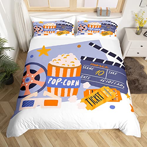 Film Theme Decor Bedding Home Theater Decor Duvet ... Mai multCover for Family Boys Girls, Vintage Cinema Style Comforter Cover Movie Themed Bedspread Cover Clapboard Popcorn Filmstrip Print Bedding Twin Size Mai puţin