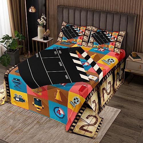 Erosebridal Home Theater Decor Quilt Set King for Boys Girls Family Movie Themed Bedspread Set Movie Theater Decor Coverlet Set Vintage Cinema Style B
