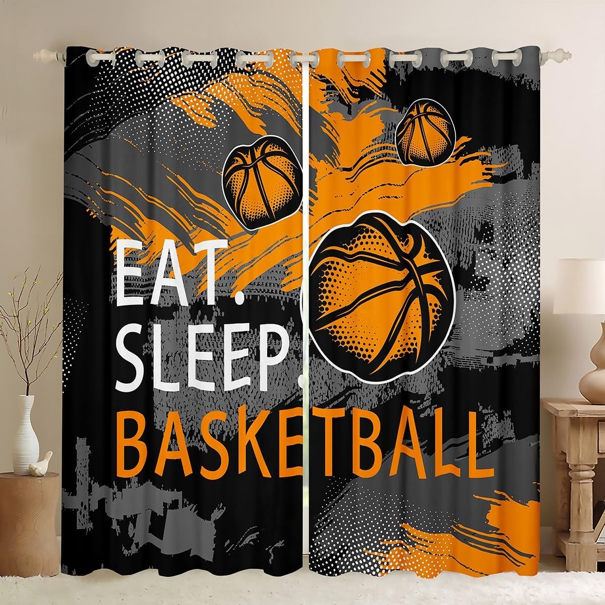 Feelyou Basketball Curtains Kids Orange Window Curtains for Bedroom Living Room Sports Theme Window Drapes for Women Men Room Decor Lightweight Eat Sl