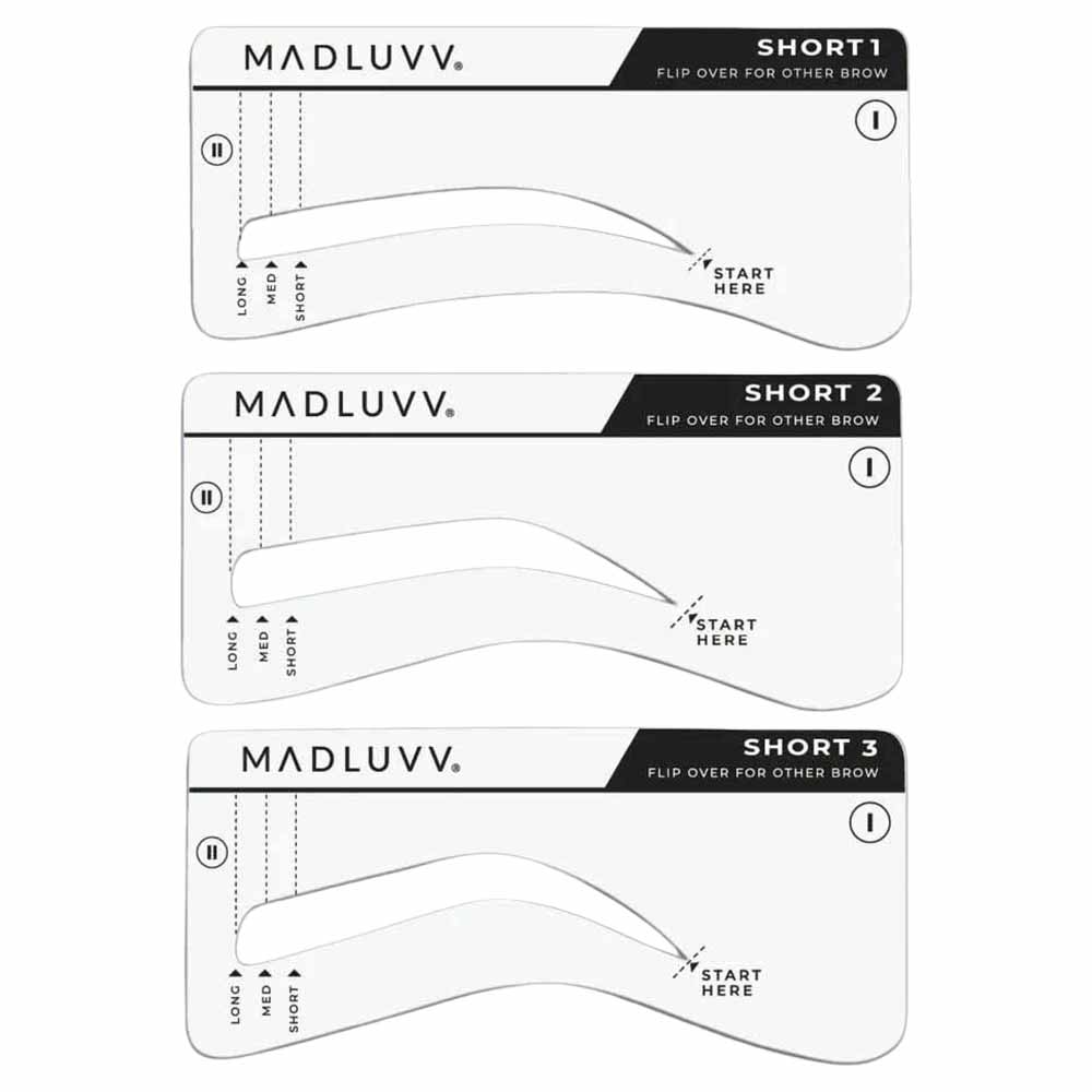 <strong>eCosmetics is an authorized retailer... More of Madluvv.</strong>Our set of three small eyebrow stencils is perfect for those with ultra-thin and sparse brows. These stencils are designed to help you achieve your desired brow shape with ease.<span style=text-decoration: underline><em><strong>Each Stencil is recommended for:</strong></em></span><em><strong>#1 Short Stencil</strong></em><ul><li>Ultra Thin Brow Hair Growth</li><li>Short Brow Length</li><li>Flat Brow Bone Arch</li></ul><em><strong>#2 Short Stencil</strong></em><ul><li>Ultra Thin/Normal Brow Hair Growth</li><li>Short Brow Length</li><li>Flat/Medium Brow Bone Arch</li></ul><em><strong>#3 Short Stencil</strong></em><ul><li>Thin/Med Brow Hair Growth</li><li>Short Brow Length</li><li>Medium/High Brow Bone Arch</li></ul> Less