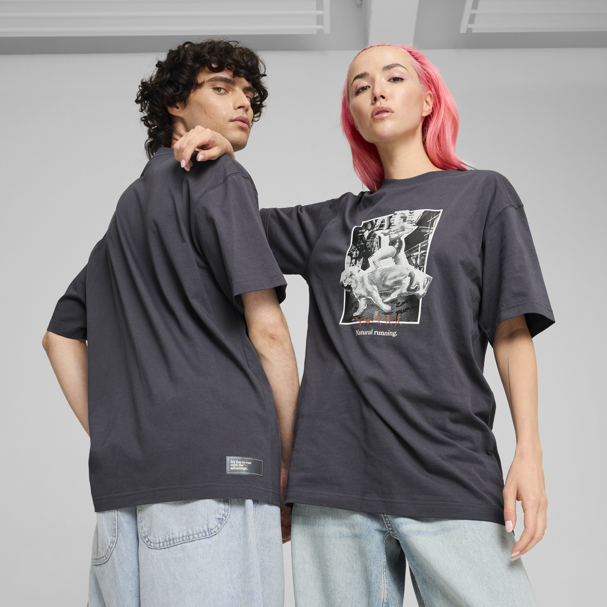 PRODUCT STORY Hit the streets in style with the CL... Mai multUB DE COURSE tee This graphic tee fuses retro athletic vibes with contemporary cool for a look that's always on trend Whether you're pounding the pavement or kicking back, its relaxed fit and bold print will ensure all eyes are on you DETAILS Relaxed fit180 gsm, single jerseyRib crew neckShort sleevePUMA branding details Mai puţin