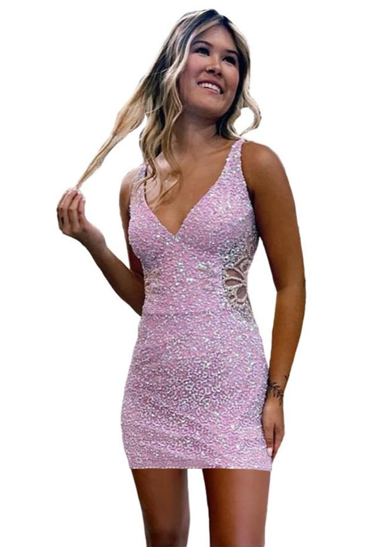 Gorgeous Hollow-Out Beaded Tight Homecoming Dresse... Mai mults for Teens Sparkly Sequin Short Prom Dresses for Women 2024 14 Lilac Mai puţin