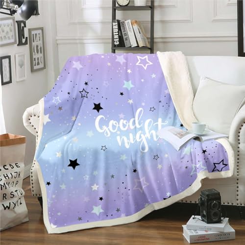 Erosebridal Star Blanket Blue Purple Gradient Thro... Morew Blanket for Girls Kids Teen Star Sprint Fleece Blanket Romantic Themed Fuzzy Blanket for Women Dream Style Bedroom Decor Sherpa Blanket 30"x40" Less