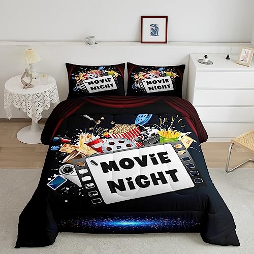 Movie Night Comforter Set Full Size for Boys Girls... More Family Home Theater Decor Bedding Movie Lover Movie Theater Theme Bedding Comforter Sets Movie Theater Decor Film Theme Duvet Insert 3 Pcs Less