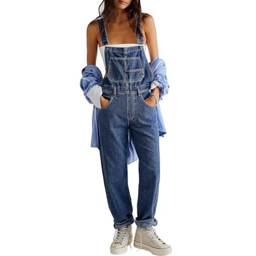Pink Queen Women's Denim Long Jumpsuit Baggy Overa... Morells Loose Fit Bib Adjustable Wide Straps Jean Jumpsuits High Waist Cotton Romper Pants Dark Blue M Less