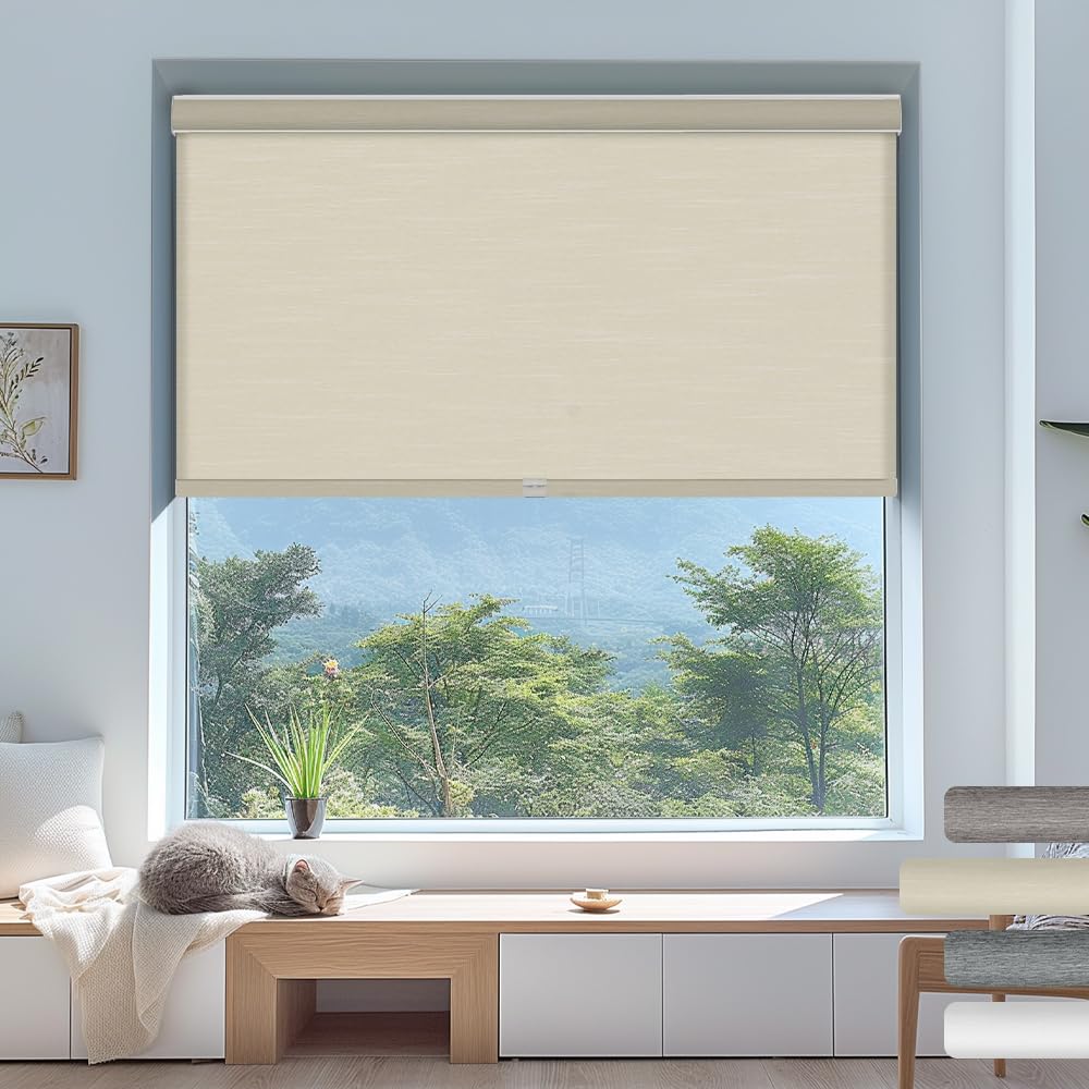 Light Filtering Roller Shades for Windows 5% Openness Solar Roller Blinds with Cassette Valance Room Darkening Heat Insulated Window Shades for Home O