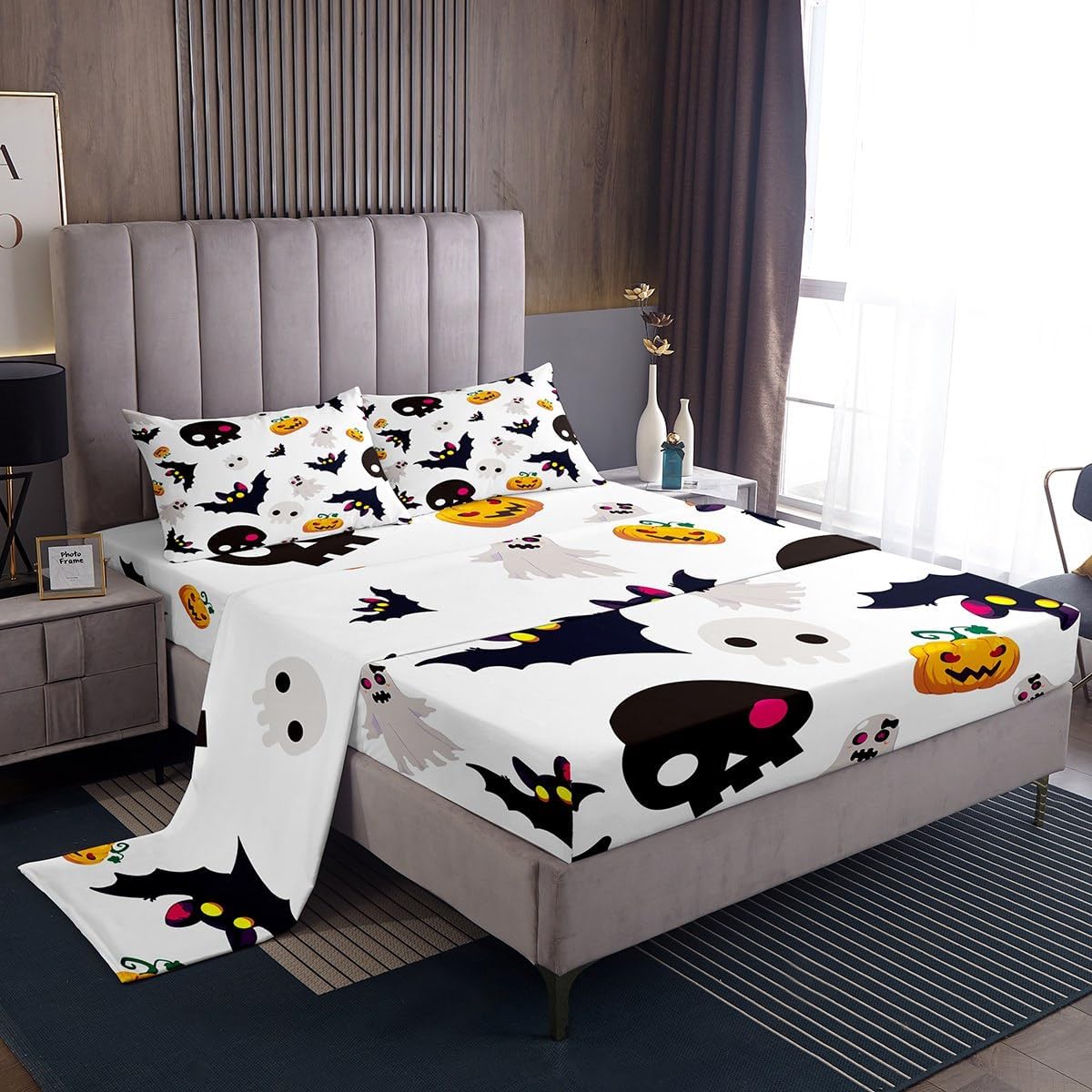 Erosebridal Black Halloween Bats Gothic Sheet Set ... MorePumpkin Lights Flat Fitted Sheet Dark Shadows Ghost Silhouette Bed Sheets Set King,Skeleton Halloween Decor Gothic Bones Cartoon for Women Multi 06 King Less