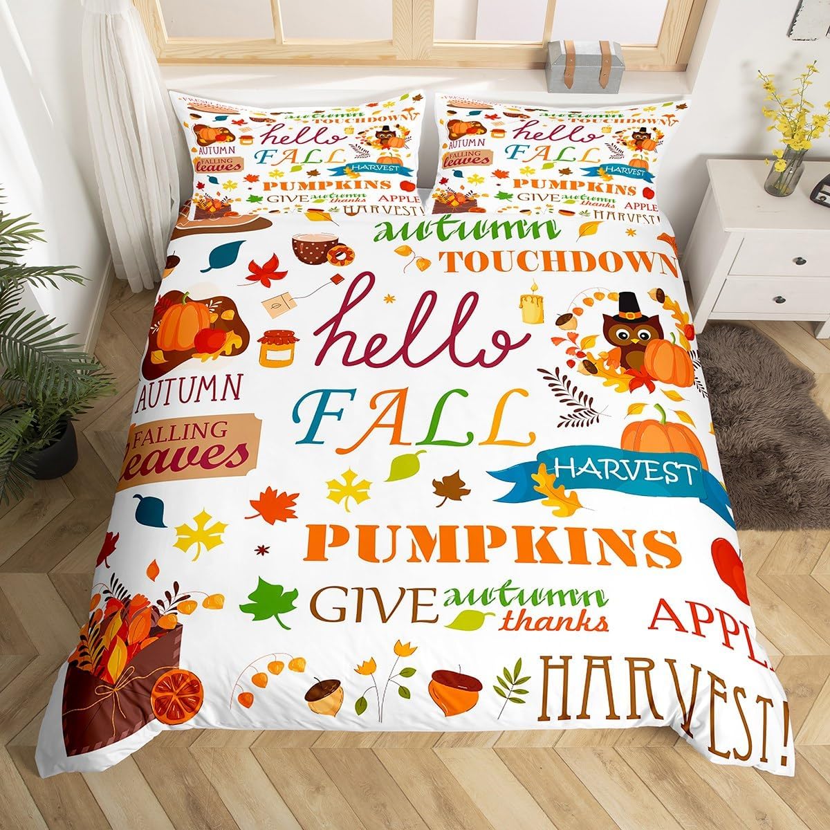 Fall Pumpkin Bedding Duvet Cover Set Kids Happy Fa... Morell Y'all Bedding Set Turkey Comforter Cover Set for Room Decor Lightweight Thanksgiving Bedspread Cover Queen Size with 2 Pillow Case Multi 29 Queen Less