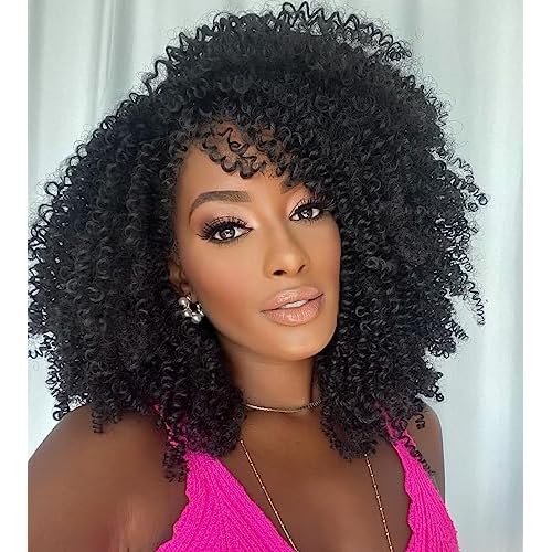 WIGER Kinky Curly Braiding Hair Marlybob Crochet H... Moreair Black Jerry Curly Passion Twist Hair Medium Length Curly Crochet Braids Synthetic Kinky Twist Hair (3 Packs) 10 Inch, 1B, 3 Packs Less