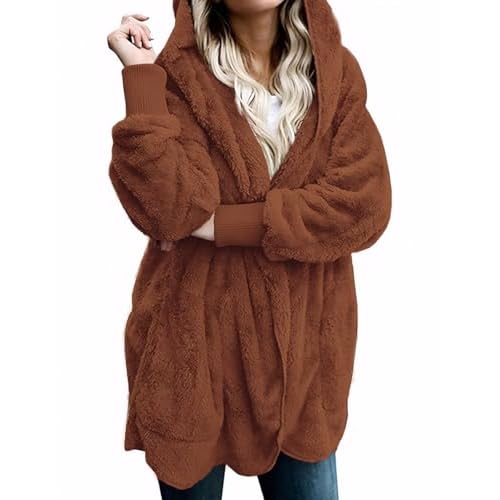 Zilcremo Women Hooded Cardigan Fuzzy Jacket Winter... More Open Front Fleece Coat Outwear with Pockets Small Caramel Less