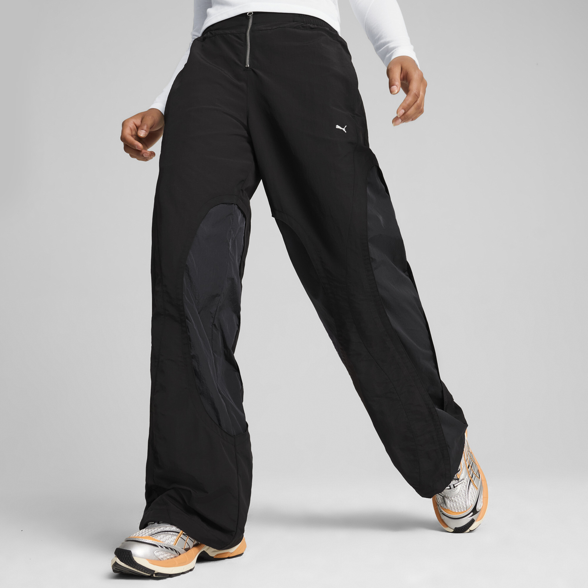 PRODUCT STORY THE FAST RACE Pants take you from st... Morearting line to finish in style Contouring lines shape a fast silhouette while moto-inspired details inject attitude Zip pockets provide storage for life in the fast lane FEATURES & BENEFITS Made with 100% recycled material excluding trims & decorationswindCELL: Technology designed to protect against the wind and keep you comfortable during exercise DETAILS Relaxed fit122 gsm, plain weaveWaistband with elasticated insertsSide pocketsPUMA branding details Less